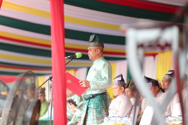 "Dengan persatuan, kerja sama, dan semangat gotong royong, saya yakin Riau akan mampu menghadapi segala tantangan. Mari kita wariskan kepada generasi penerus sebuah provinsi yang lebih baik, lebih sejahtera, dan tetap menjaga nilai-nilai luhur budaya Melayu, "tutup Gubri. (Galeri)